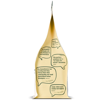 21 g Protein, komplexe Kohlenhydrate, alle 26 essentielle Vitamine & Mineralien und sättigt bis zu 5 Stunden. Natürlich vegan.